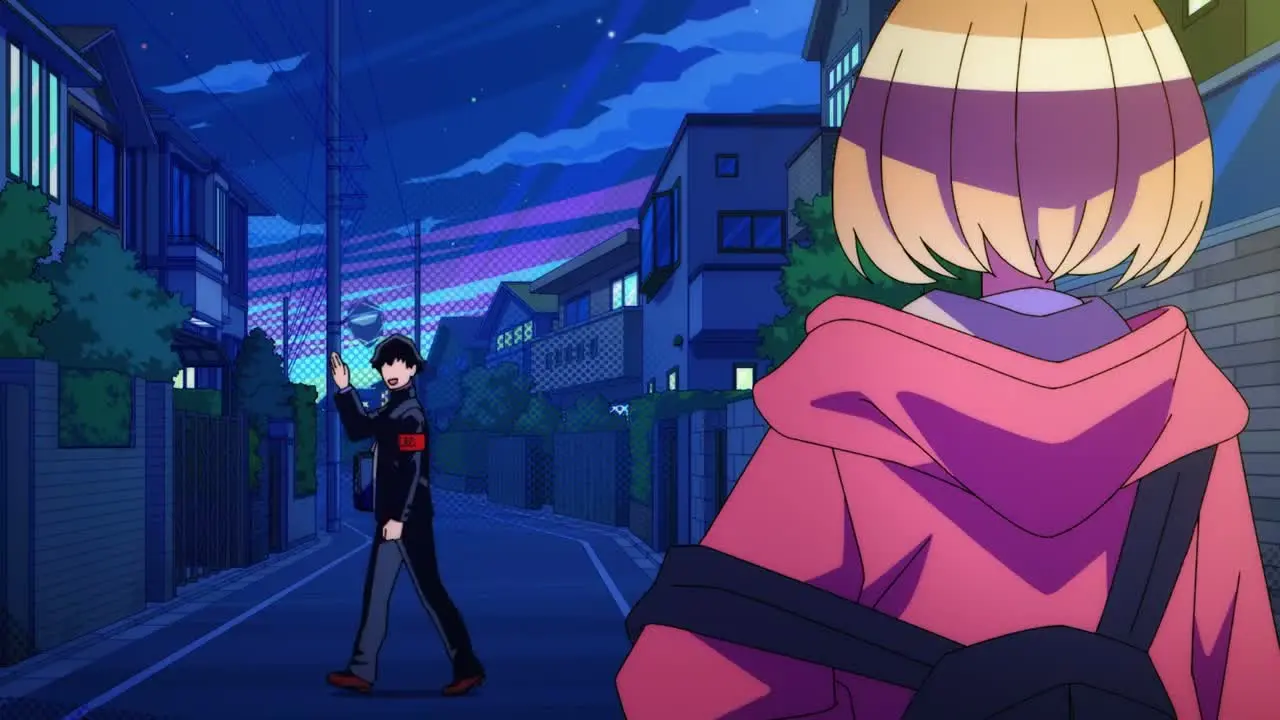 Аяме — полная противоположность Юкио. Она носит вызывающе короткую юбку, нарушая все школьные правила, и смотрит на мир с безудержным любопытством. Вместо того чтобы скучать, она превращает крышу в своё личное королевство: рисует мелом, приносит чай в термосе и засыпает Юкио потоком странных вопросов и смелых идей. Её настойчивость сначала раздражает парня, но постепенно он обнаруживает, что ждёт этих встреч. Их диалоги, начинающиеся как нелепые споры, медпенно затрагивают всё более глубокие темы — одиночество, страх будущего, поиск своего места. Крошечный мир на крыше, который казался Юкио тюрьмой, становится пространством для тихой революции, где под звуки школьного радио и шум ветра два одиночества начинают находить неожиданное понимание и поддержку друг в друге.